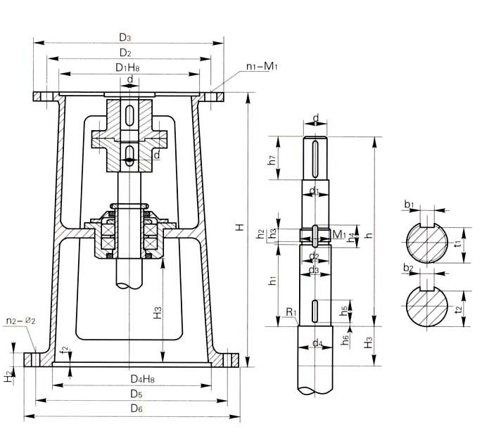 本機(jī)架系列的JXLD型適用于與XLD型擺線針傫行星減速機(jī)聯(lián)接,JBLD型適用于與BLD型擺線減速機(jī)相連接。為使攪拌軸與軸承室裝配,維修方便,同時(shí)對(duì)BLD2、BLD3、BLD4與相配的機(jī)架JBLD2、JBLD3、JBLD4的軸承室加大,使之與較粗的攪拌軸相一致。