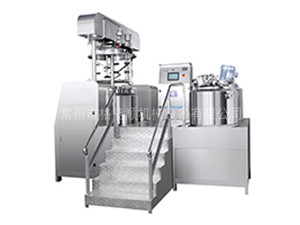 真空乳化機(jī)主要由水相鍋、油相鍋、乳化攪拌主鍋、真空系統(tǒng)、升降系統(tǒng)(可選)、電器控制系統(tǒng)(可選用PLC)、操作平臺(tái)等組成。